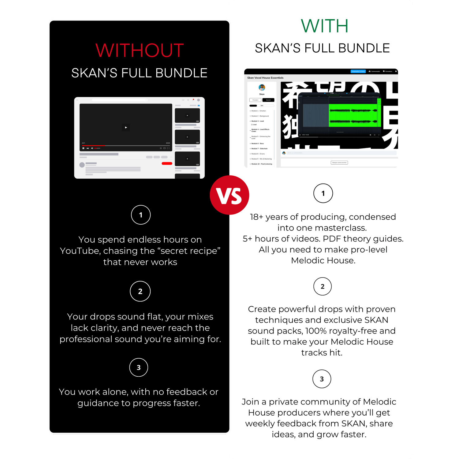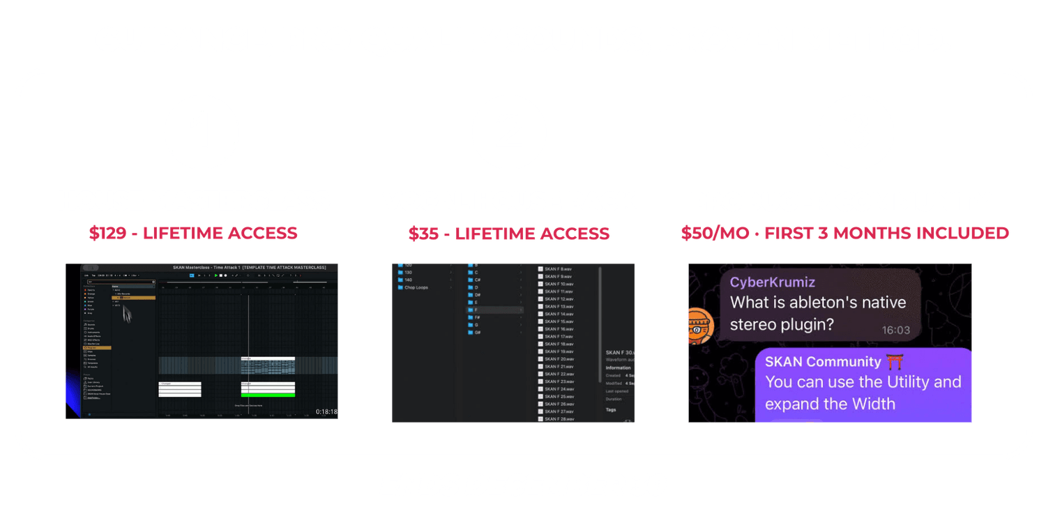 Nope. This is a full ecosystem: a masterclass, a sound pack, and real community support. Everything is made from scratch, tested in real tracks, and used by SKAN himself.